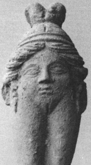 Frizzell’s article was headed by a picture labelled as ‘a terracotta figurine of Baubo from the fourth century AD’. Where even to start with this? Maybe by noting that the identification is speculative and the date entirely wrong. More broadly, though, it’s an example of the urge to make connections between literature and art. Modern scholars have sometimes tried to tie otherwise puzzling physical objects to equally mysterious fragments of text; for example, what’s shown at the start of that article is one of the ‘Priene terracottas’, found in Turkey in 1898, which are far older than the caption suggests, dating to the third or early second century BC. They seem to merge a female lower torso and a face. There’s nothing to link them to Baubo, but the urge to make a connection is very strong.